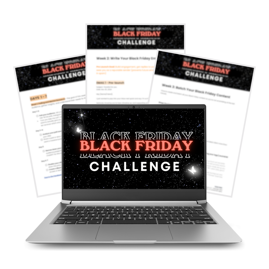 Good news? you don’t have to go through it alone! I’ve got your back with the Black Friday Challenge, where I’ll walk you step-by-step through everything you need to sell out.