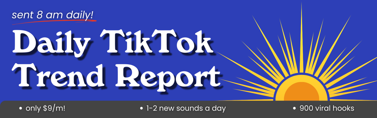 Everyday at 8 am, you will get our Daily Trend Report with 1-2 trending sounds. Each sound will feature 1-3 viral hooks that can be customized for ANY niche.